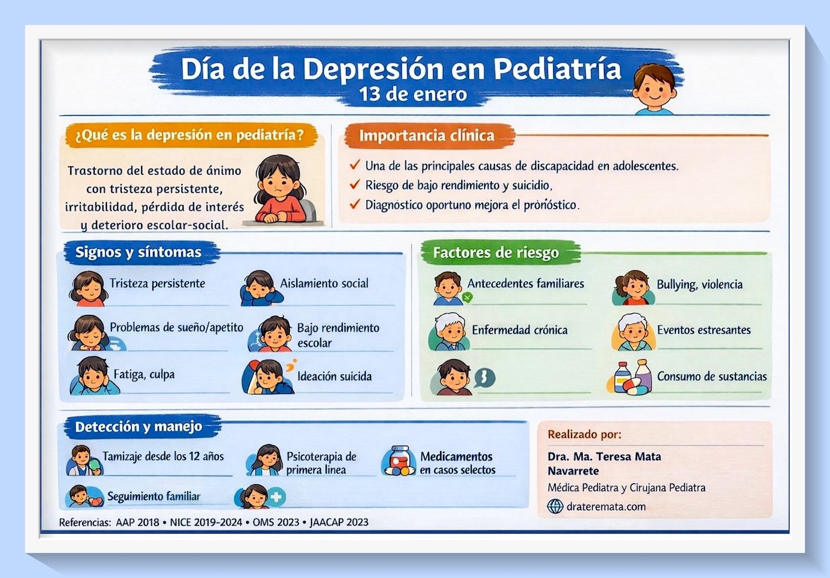 La depresión en niños y adolescentes es una enfermedad real que afecta sus emociones y su comportamiento. No es flojera, no es mala conducta y no es una etapa normal del crecimiento.