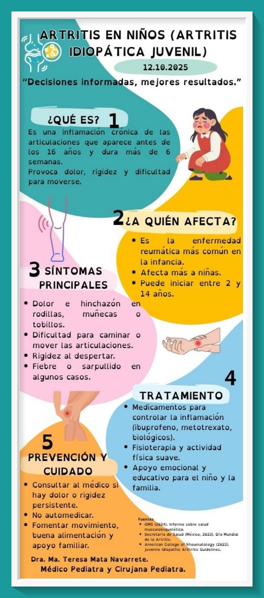 En este infograma trataré el tema sobre el Artritis en niños -artritis idiopática juvenil-, como parte fundamental de reflexión para conocer mejor lo que debemos hacer cuando esto ocurra.