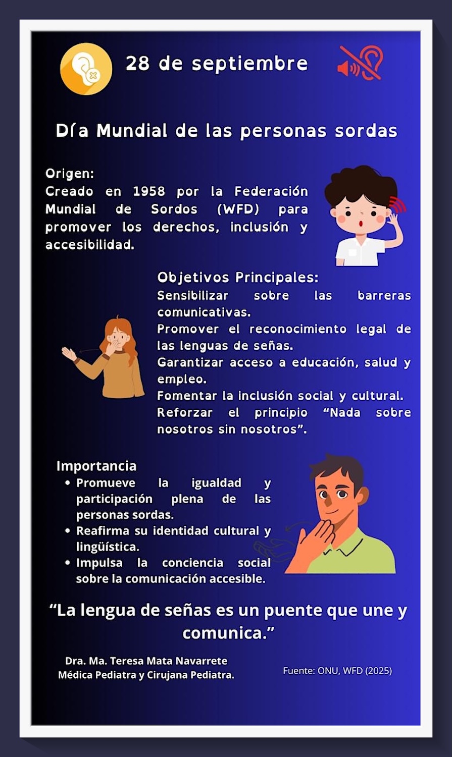 En este infograma trataré el tema sobre el Día Mundial de las Personas Sordas, como parte fundamental de reflexión para entender mejor a quienes tienen esta discapacidad.