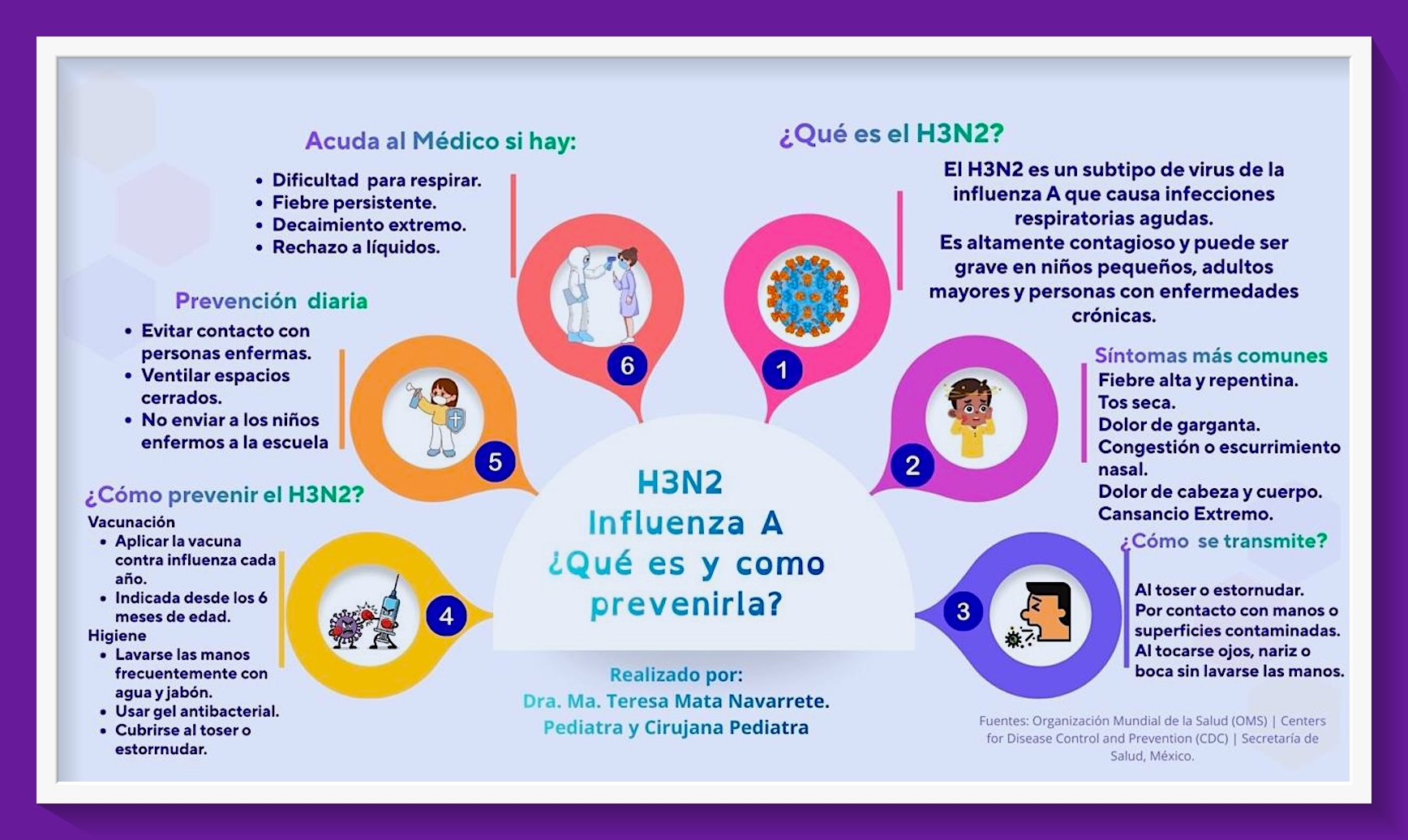 En este infograma trataré el tema sobre Qué es la Influenza A H3N2 y cómo prevenirla, justo en estos días invernales en los que se ha comenzado a sentir en México el contagio. Fundamental reflexión para conocer cómo debemos hacer para prevenir, cuidar y atender a los maravillosos niños.