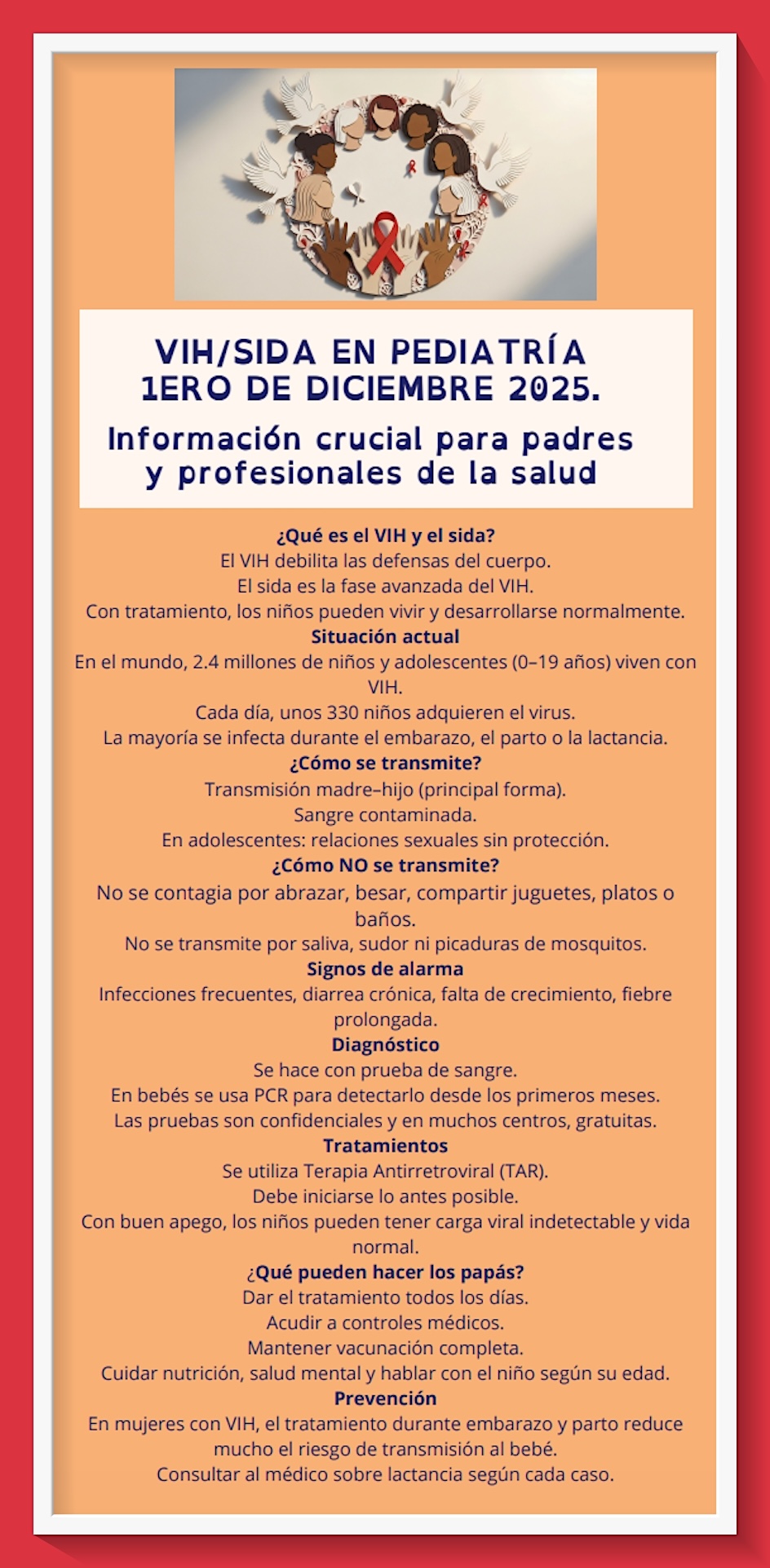 En este infograma trataré el tema sobre el VIH/SIDA en pediatría, como parte fundamental de reflexión para conocer cómo prevenirlo y lo que debemos de hacer cuando esto pudiera ocurrir.